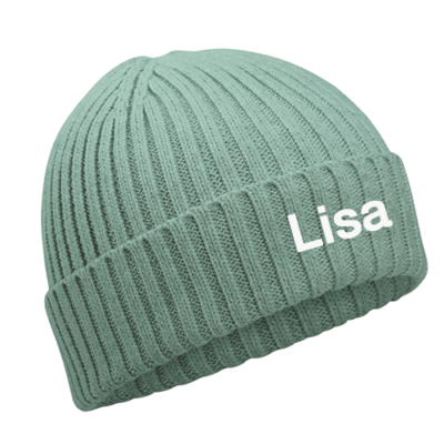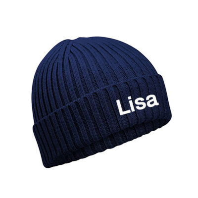 Grof gebreide muts met naam – borduren – diverse kleuren