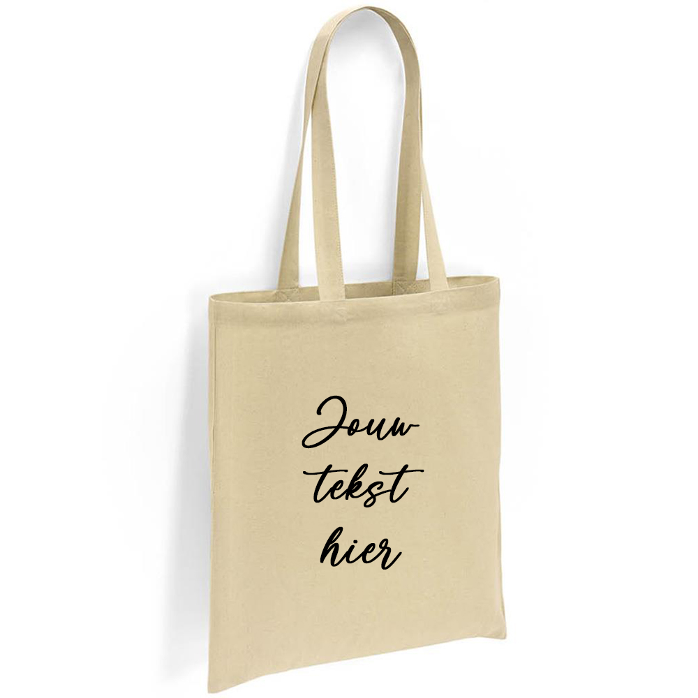 In stijl op stap met deze super leuke gepersonaliseerde canvas tas. De tas wordt bedrukt met een eigen tekst.