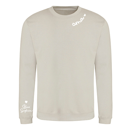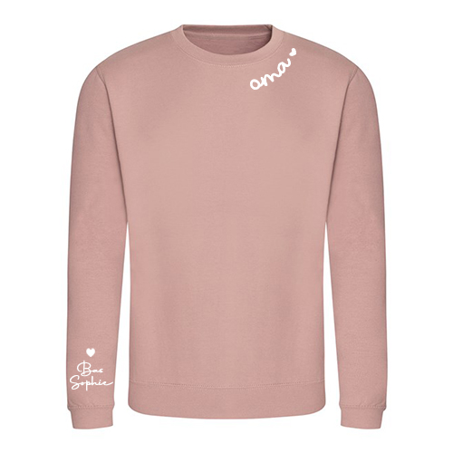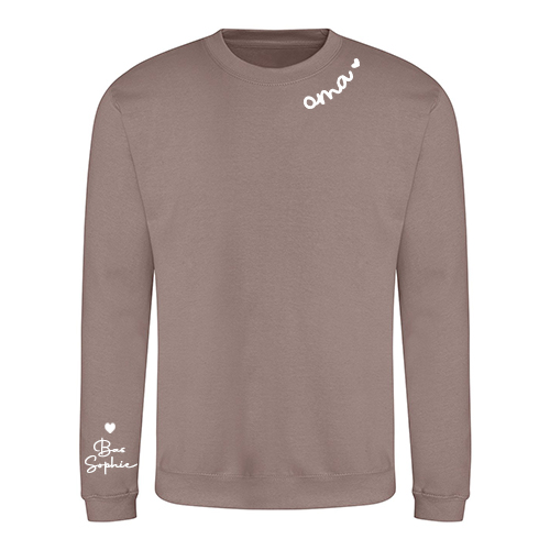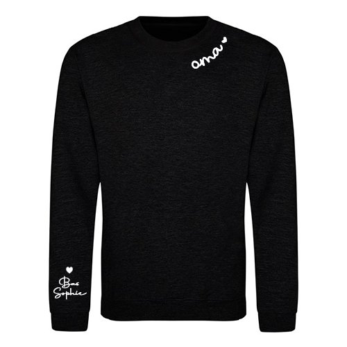 Speciaal voor alle oma’s deze heerlijke sweater met oma en de naam/namen op de mouw.